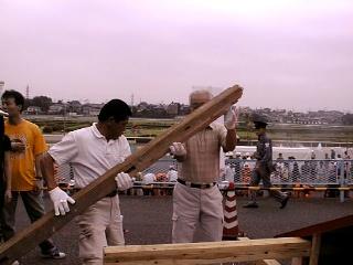 ![]() 被災者に声をかけながら、 バールやジャッキを使い、徐々に屋根を持ち上げ無事救出 成功!! |