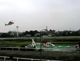 ![]() 競馬場内に常設の防災用ヘリポートを設置する試みは、浦 和市が初めてだそうです。 横浜市からヘリコプターにより救援物資が到着しました。 |