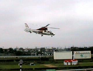 ![]() 地上の道路は破壊され、大渋滞。 ビル屋上に取り残された人命救助に向かう浦和市の防災ヘ リの勇姿。 |