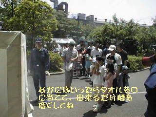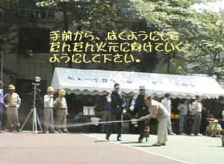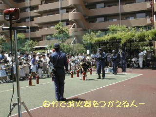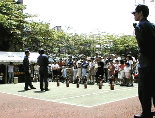 消防署による消防訓練終了時に
